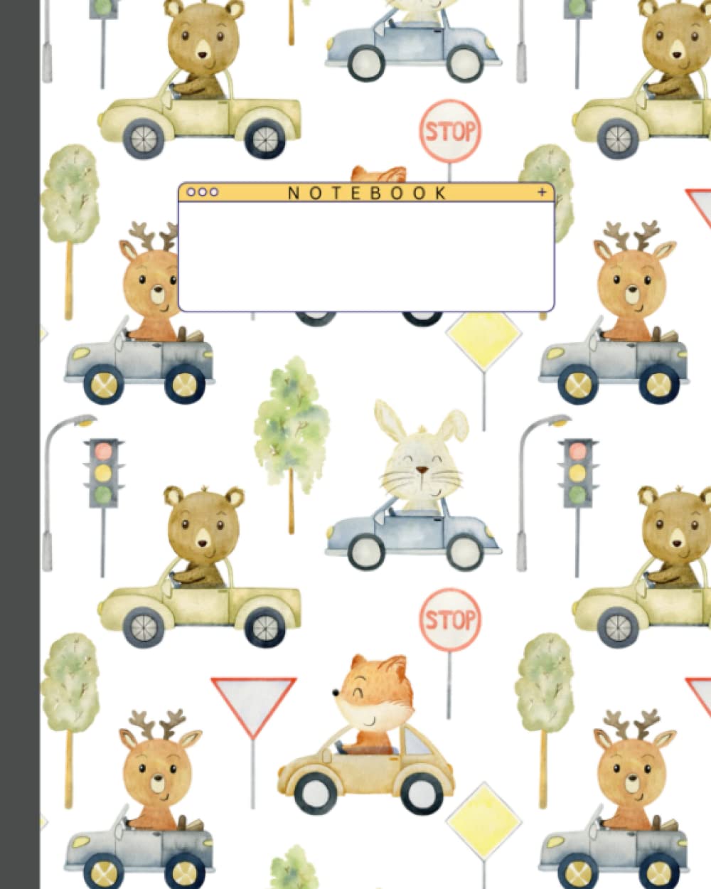 Cute Animal Drivers: Wide Ruled Lined Notebook (Composition Notebook, Journal) (8x10): Great for Writers, Notetakers, Journal Keepers
