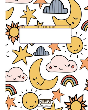 Cute Sun, Moon and Star Composition 8" x10" Notebook.